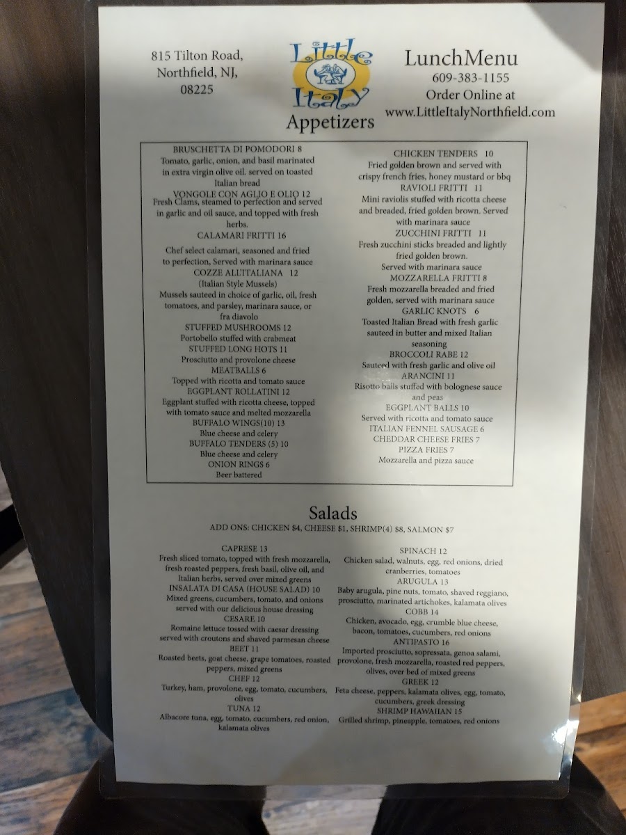 Welcome to Little Italy Restaurant & Pizzeria, where authentic Italian cuisine meets a warm, inviting atmosphere. Located at 815 Tilton Rd in Northfield, NJ, this eatery prides itself on offering a diverse menu that caters to both pizza lovers and pasta enthusiasts alike. Indulge in their classic pizza options—from the signature Grandma pie to the memorable white veggie pizza, each crafted with fresh ingredients.